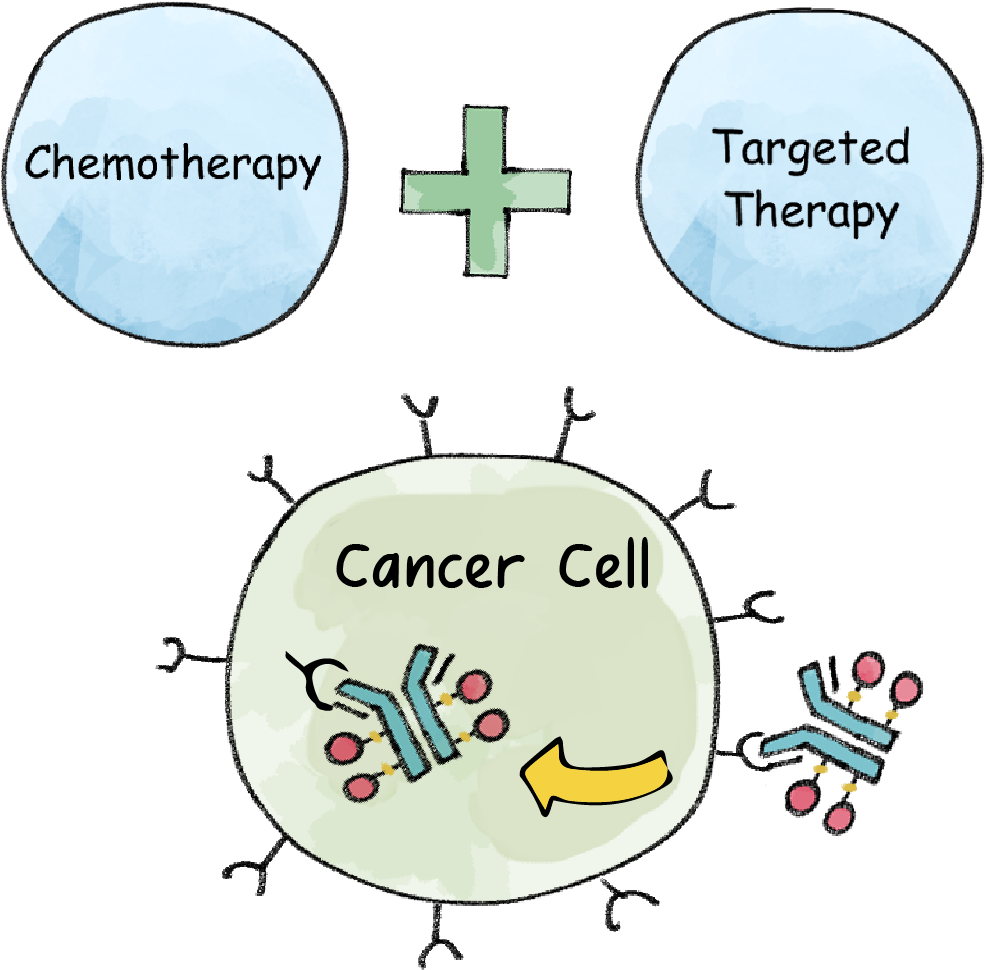 Antibody-drug conjugates (ADCs) target certain cancers that come back or spread, or are used when other treatments don’t work by combining chemotherapy and targeted therapy. ADCs are designed to selectively bind and attack cancer cells and work by combining 1) antibodies, which are proteins produced by your immune system and attach and remove antigens (foreign substances) from your body 2) drugs that destroy cancer and 3) a linker protein (connects 1 and 2 as the drugs target the tumor).